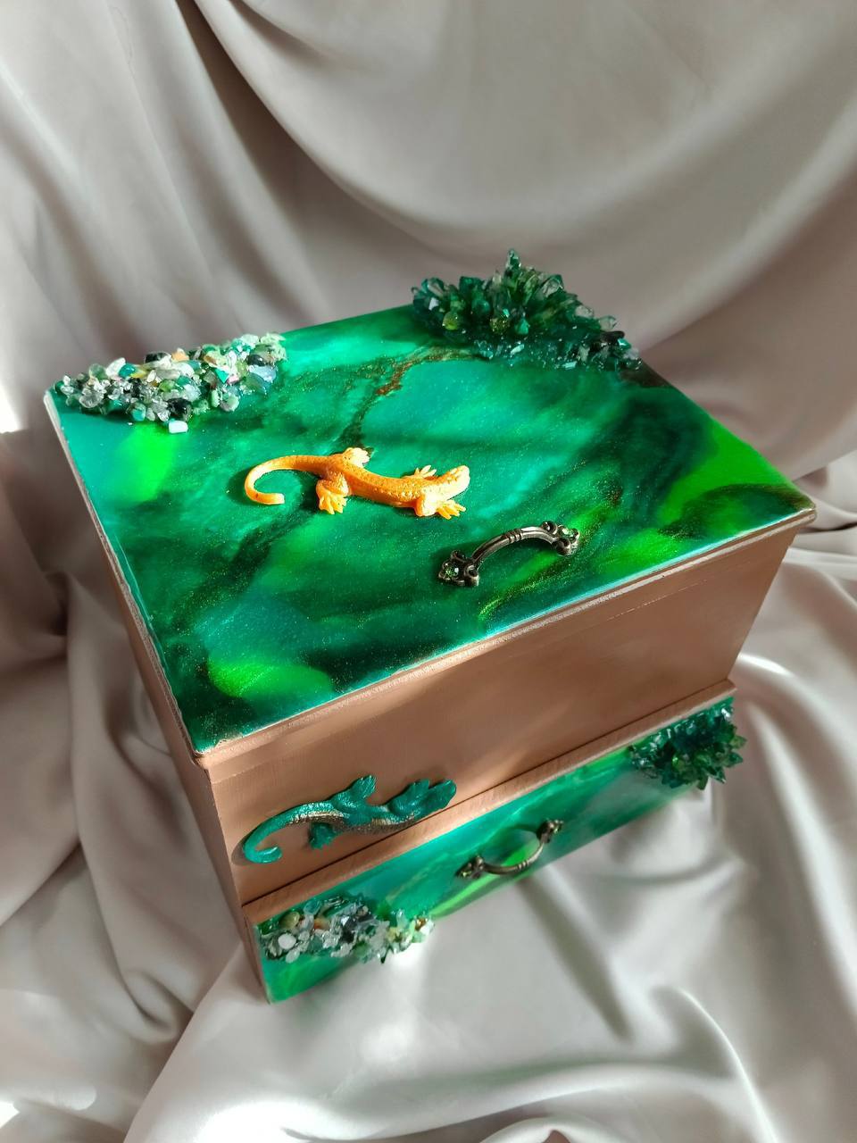 Она способна законсервировать красоту. Натали Евдокимова создает изделия из эпоксидной смолы. Менажницы, шкатулки, сервировочные доски, подстаканники украшены застывшими узорами. Девушка прошла обучение по работе с этим непростым материалом. В её онлайн-мастерской «Эпоксидная магия» также представлены работы с натуральными камнями, стабилизированным мхом и другими природными материалами.