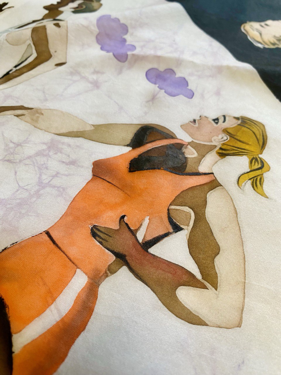 Курская самозанятая Елена Родионова перенесла картины Дейнеки на шёлк