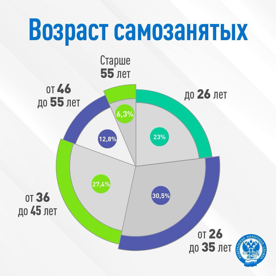 Федеральная налоговая служба провела небольшое исследование о возрастных группах плательщиков НПД. Число самозанятых в России превысило 12,5 млн человек. В Курской области их свыше 54 тысяч.